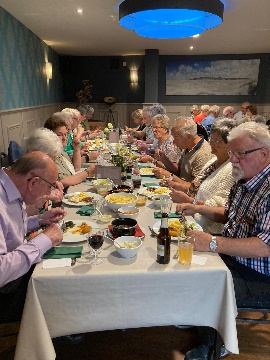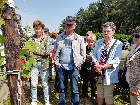 deelnemers op weg. We begonnen de dag met koffie en lekkere appeltaart in Terheijden. Daarna ging de ene bus naar Oudenbosch voor een rondleiding in de basiliek. De gids vertelde allerlei wetenswaardigheden over de bouw van de basiliek waarmee in 1865 begonnen werd. In 1892 werd uiteindelijk de façade gebouwd naar het voorbeeld van de St. Jan van Lateranenkerk in Rome. In dat jaar werd de kerk gewijd. Tot in de jaren 30 van de vorige eeuw was men nog bezig met het decoreren van de binnenkant. De andere bus maakte eerst een rondrit langs bezienswaardigheden in Breda en reed daarna naar de asperge- en wijnboerderij de Santspuy. Op de boerderij kregen we een interessante rondleiding tussen de wijnstokken en aspergebedden. We kregen, om te proeven, een lekker glas witte wijn en verscheidene likeurtjes. Tussen de middag kregen we een heerlijke pannetjesmaaltijd in Terheijden. Na het eten wisselden de bussen van reisdoel zodat iedereen die dag hetzelfde gezien had. We waren pas rond 19.00 uur weer thuis!